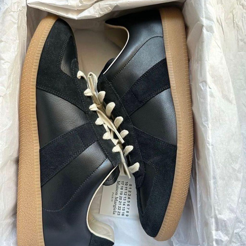 Stay ahead of the fashion game with the Maison Margiela Replica Black Gum S57WS0236P1895H6851 sneakers. These stylish kicks from Maison Margiela feature a sleek black design with a contrasting gum sole, perfect for completing your streetwear look.