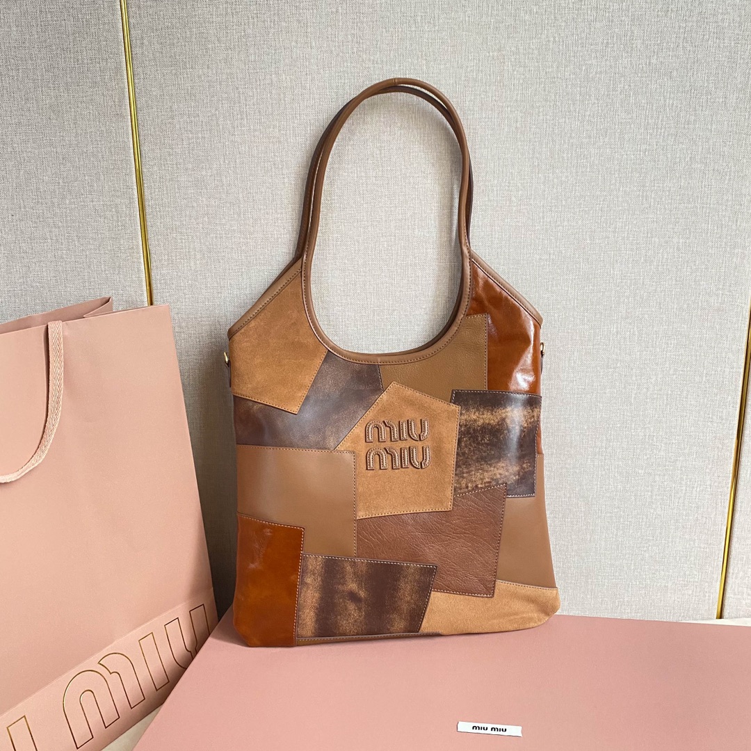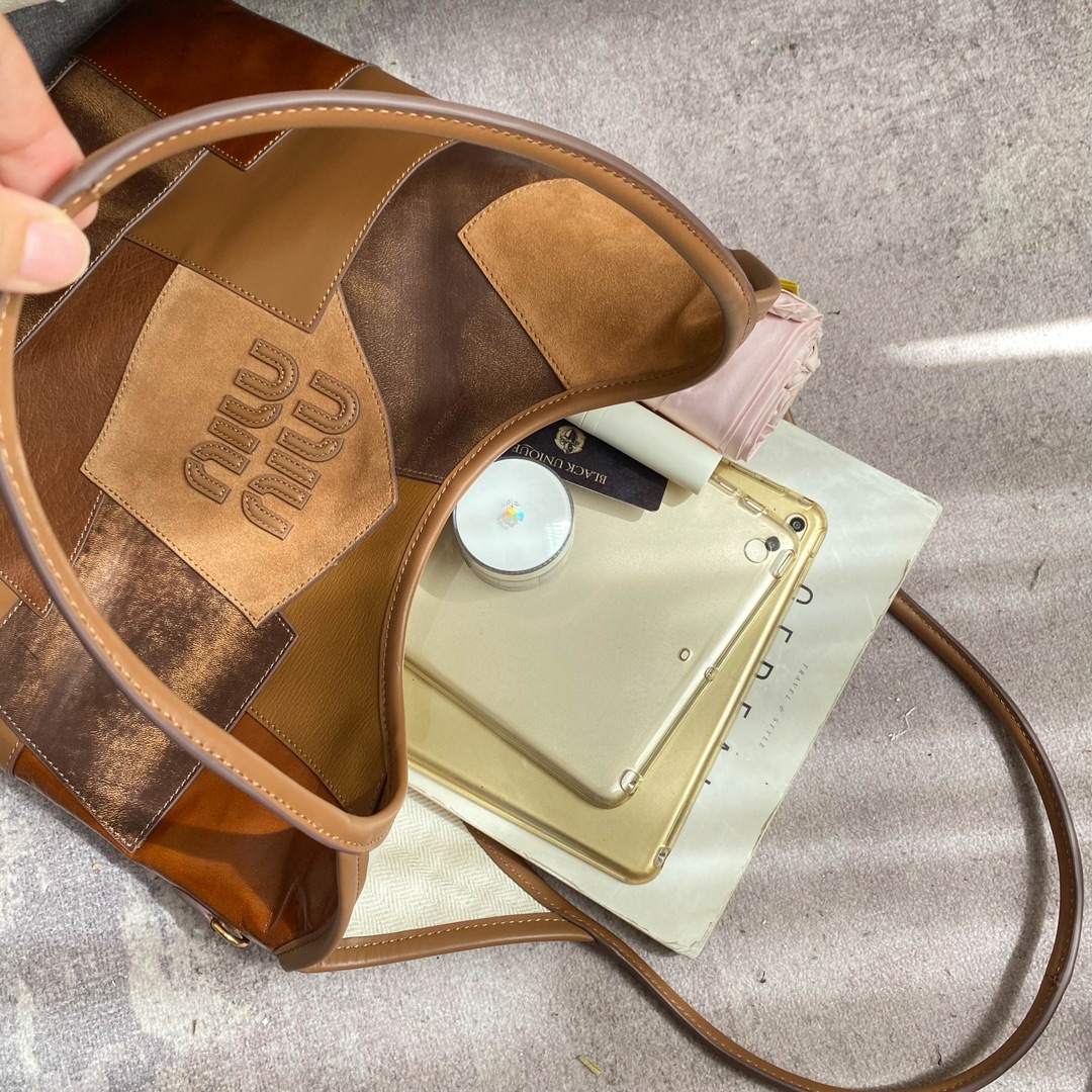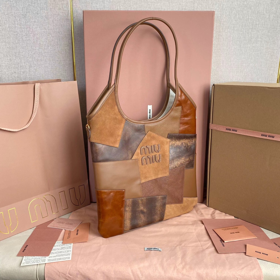 Miu’s new Isetan limited edition tote bag, handcrafted with various leathers, its bold and innovative design perfectly embodies Miu’s unconventional, carefree, and inclusive attitude towards life. This is an absolute must-have style this year. Made of top-grade imported calfskin, it boasts a luxurious feel, a soft yet resilient body, and a relaxed, effortless style. With its large capacity, it’s guaranteed to turn heads wherever you go. Features include a hand-stitched leather logo, a new linen lining, a zippered pocket, and dimensions of 35 x 40 cm. Comes with original packaging.