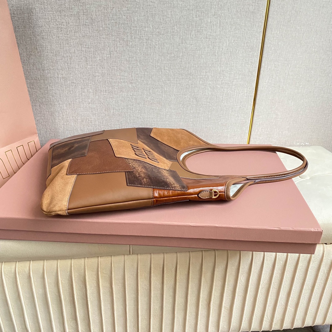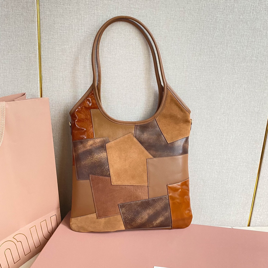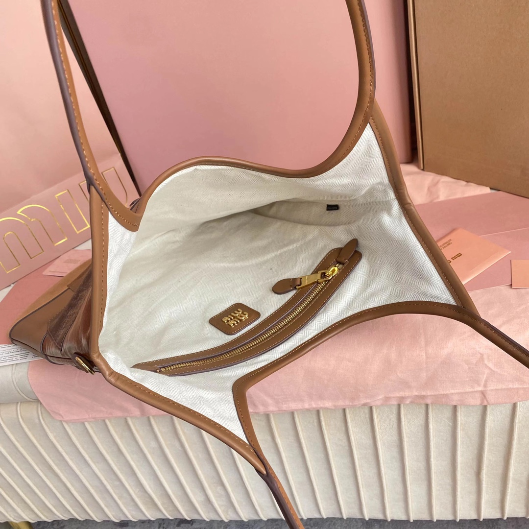 Miu’s new Isetan limited edition tote bag, handcrafted with various leathers, its bold and innovative design perfectly embodies Miu’s unconventional, carefree, and inclusive attitude towards life. This is an absolute must-have style this year. Made of top-grade imported calfskin, it boasts a luxurious feel, a soft yet resilient body, and a relaxed, effortless style. With its large capacity, it’s guaranteed to turn heads wherever you go. Features include a hand-stitched leather logo, a new linen lining, a zippered pocket, and dimensions of 35 x 40 cm. Comes with original packaging.