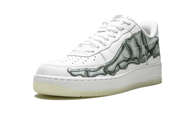 The Nike Air Force 1 Low “Skeleton” is a festive release for Halloween 2018. The iconic white-on-white Air Force 1 Low received a spooky update for Halloween with a skeletal foot graphic printed across both sides of the upper and on each insole. The traditional Nike logo on the tongue is also remodeled with bones spelling out the brand name. For one last special touch, the outsole is featured in glow in the dark rubber. The frighteningly fresh Air Force 1 Low “Skeleton” appropriately released on October 31, 2018, and continued the lineage of Halloween-themed Air Force 1s