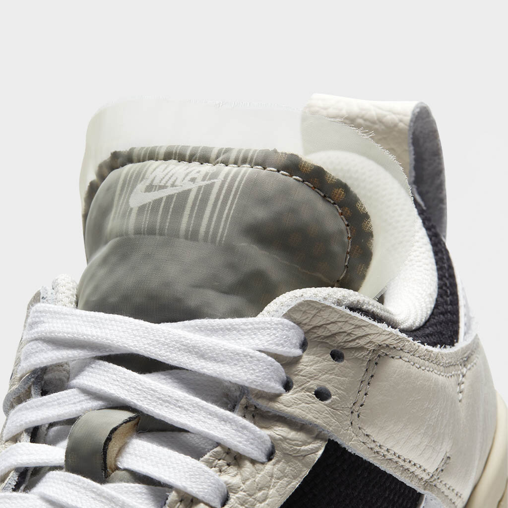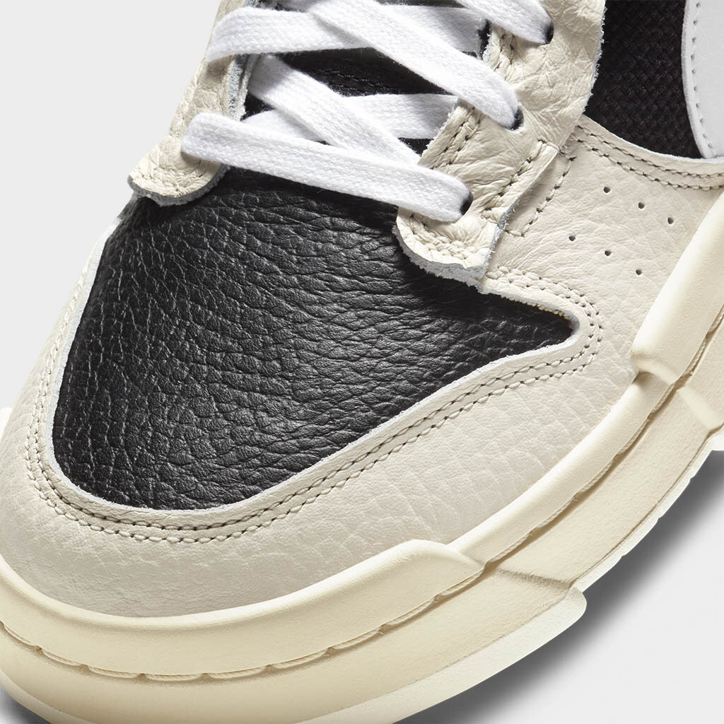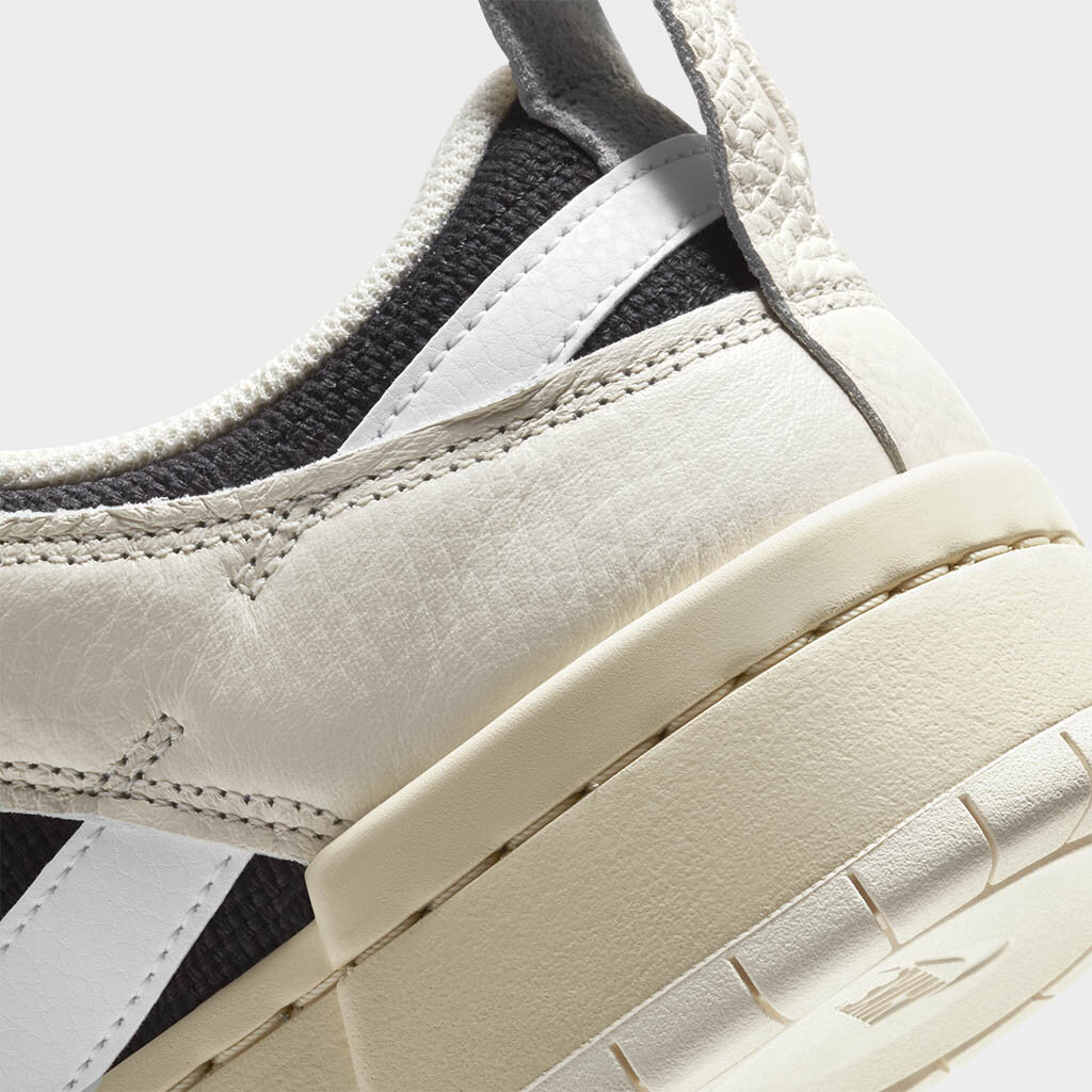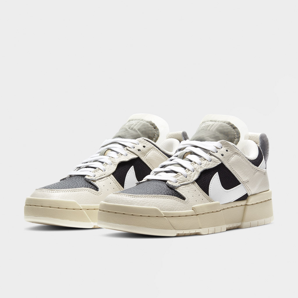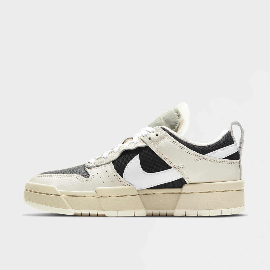 The Nike Dunk Low Disrupt Pale Ivory Black W is dressed in two main color schemes; black and pale ivory. ​ The midfoot, heel, as well as the forefoot of this Low Nike Dunk for women sneaker has leather material overlays in the off-white shade, while the underlays in-between them are dressed in a darker shade of the two. The laces semi-hidden profile Swooshes, as well as the collar lining are all white.The “NIKE” emblem and a barcode design can be seen on this pair of shoes. ​ The Nike Dunk Low Disrupt Pale Ivory Black W initially hit the market on 25th February 2021 with a retail price set at $110.