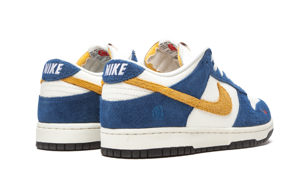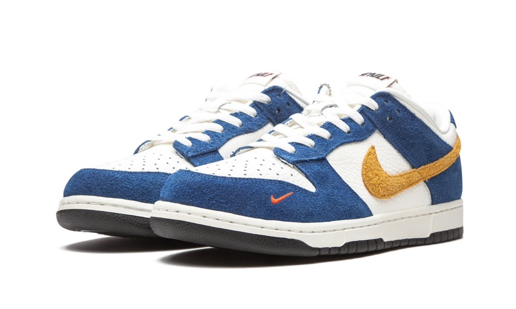 South Korean streetwear label Kasina teamed up with Nike to release the Nike Dunk Low Kasina Industrial Blue. This design is one of two colorways to release as part of the collaboration. The Dunk Low Kasina Neptune Green nods to exit signs that can be seen when driving through the Gyeongbu Expressway, the main highway between Busan and Seoul. On the flip side, the Industrial Blue colorway pays tribute to the design of Seoul’s public transport buses in the 1980s. The Nike Dunk Low Kasina Industrial Blue features a white tumbled leather upper with Industrial Blue suede overlays and a yellow Swoosh. Kasina branding on the tongue, embroidery on the side heel, and an orange mini Swoosh on the toe complete this luxe design. The Nike Dunk Low Kasina Industrial Blue released in September of 2020 and retailed for $120.