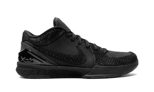 The Nike Zoom Kobe 4 Protro “Black Mamba” is a premium colorway of Kobe Bryant’s fourth signature shoe with Nike that celebrates one of the late Basketball Hall of Famer’s nicknames. True to its name, the “Black Mamba” Kobe 4 Protro features a mostly monochromatic black appearance with a reptilian-inspired look. More specifically, faux snakeskin can be found on the overlays and Swoosh. The base of the shoe is made from a black suede material with perforations on the toe. Kobe’s “24” jersey number with the Los Angeles Lakers can be found on the heel while his signature is designed in gold on the lateral side of the black TPU heel counter. Release date: December 26, 2023