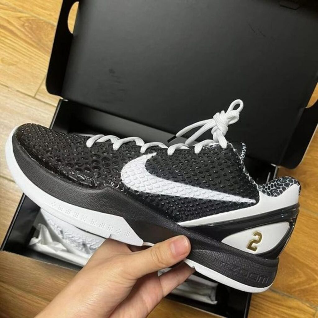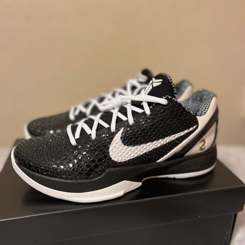 The Nike Kobe 6 Protro Mabacita Sweet 16 features a black snakeskin-inspired upper as a tribute to Kobe’s Black Mamba on-court moniker. From there, Gigi’s AAU basketball jersey number, 2, is stamped on both lateral sides of the ankle. The Mamba & Mambacita Sports Foundation crest is printed on the heel of each shoe followed by both Kobe and Gigi’s names underneath. Lastly, a neoprene and mesh tongue and signature Zoom midsole provide comfort and stability on and off the court.