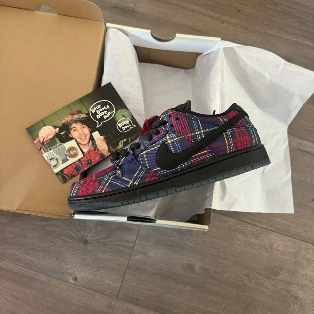 Pay homage to the “Human Serviette” with the Nike SB Dunk Low “Nardwuar.” This one-of-a-kind collaboration celebrates the legendary Canadian interviewer with a vibrant, all-over tartan plaid upper that mirrors his iconic signature beret. Complete with custom “Doot Doola Doot Doo” branding and unique textures, this sneaker is a must-have for fans of music history and eccentric street style alike.