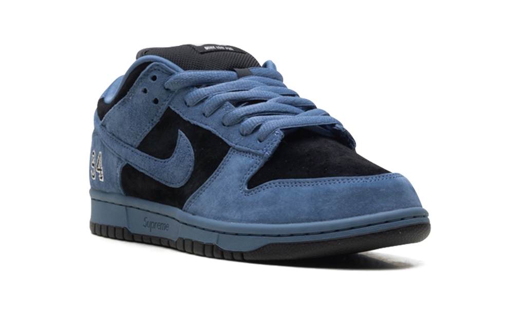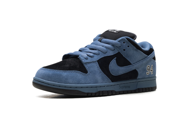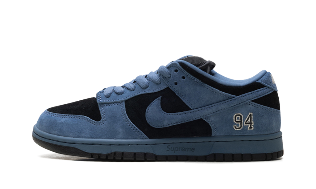The Supreme x Nike SB Dunk Low “Ocean Fog” is one of five colorways that the streetwear brand released in spring 2025. Anytime Supreme releases a Dunk, it’s a big deal, and this 2025 collaboration is no exception. The “Ocean Fog” colorway of the Supreme Dunk combines deep blue suede and black panels throughout the shoe. The number “94” is embroidered by the heel in a style that is reminiscent of Michael Jordan’s “23” that appears on certain Air Jordan 5 models. The “94” is a nod to the year Supreme opened, and the brand’s logo is also debossed on the midsole.