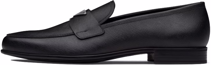 Stay stylish with the Prada Plaque Loafer in Black Saffino Leather. Perfect for a casual yet sophisticated look, these sneakers by Prada are a must-have. High-quality materials and impeccable design make them a versatile addition to your wardrobe.