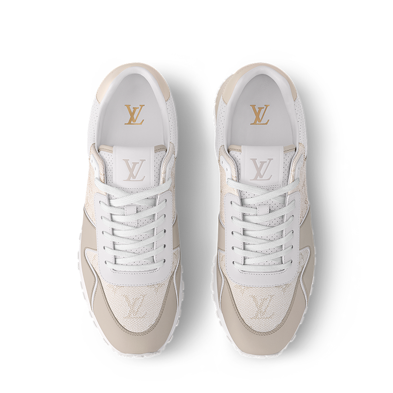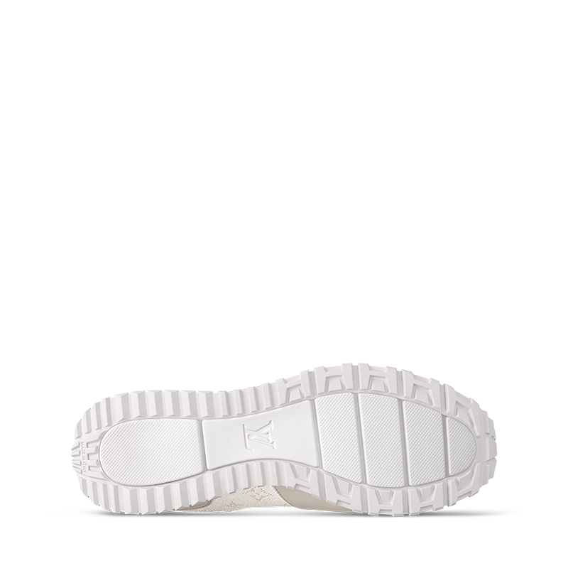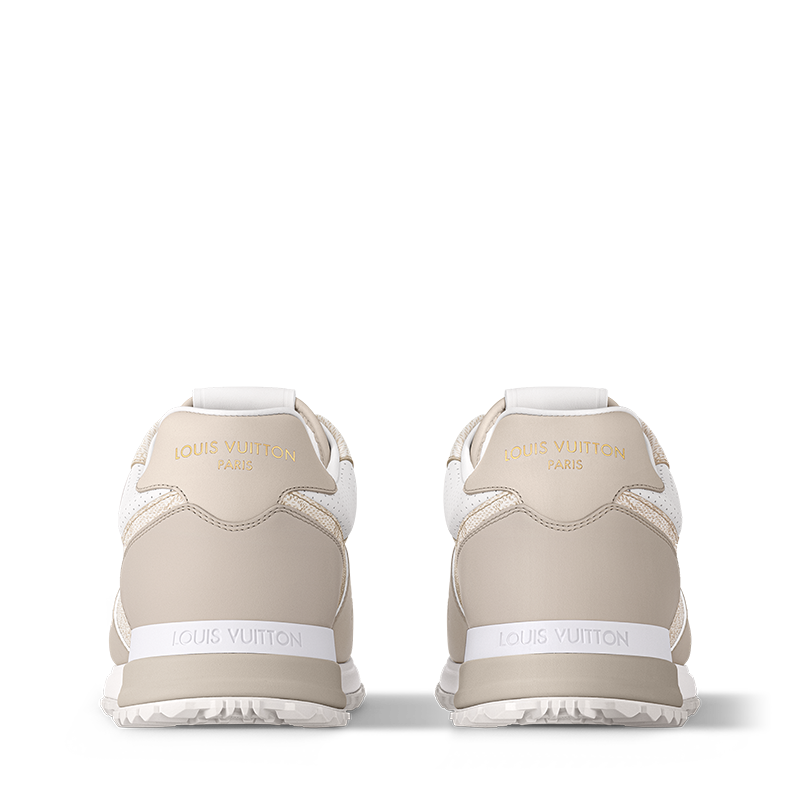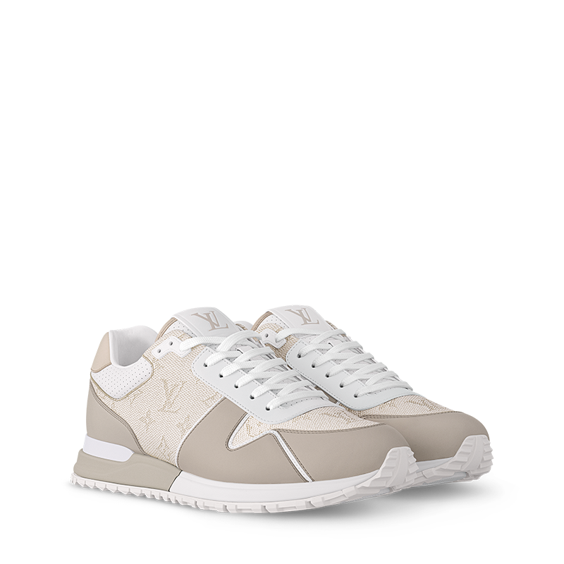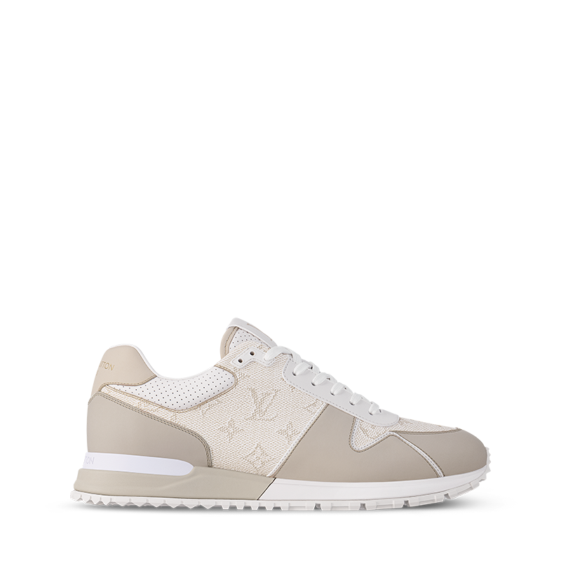This edition of the Run Away sneaker pairs Monogram grained calf leather with smooth calf-leather trim. The refined color palette and combination of materials complement the sleek design of this sneaker, which was inspired by running shoes. It is finished with a two-tone rubber outsole with hand-applied leather trim and a metal plate.