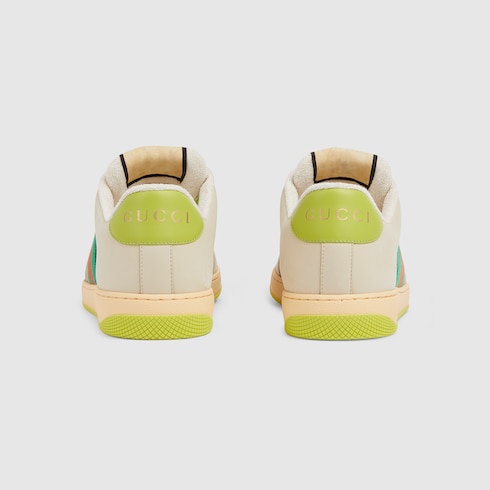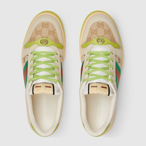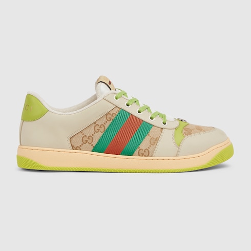 Influenced by classic sneakers from the 1970s, the Screener sneakers is named for the defensive sports move. This variation appears in multicolor Original GG canvas. The green and red Web stripe on the side and the vintage Gucci logo complete the style.