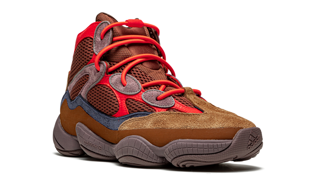 The adidas Yeezy 500 High “Sumac” is an earth tone colorway of the retro basketball-inspired high-top by Kanye West. A May 2021 release, the “Sumac” features a predominantly brown color scheme with hues of the neutral color appearing in dark and light tones on various panels. Brown mesh forms the base with dusty blue suede overlays appearing on the either side and on the eyelets. Bold red leather overlays on the collar, along the eyelets, and on the shoelaces breaks up the look. A tan suede panel on the toe contrasts the brown mudguard. Adidas’s throwback adiPRENE midsole and Feet You Wear outsole are touchstone designs from the brand’s archival ‘90s basketball segment. Release date: May 17, 2021.