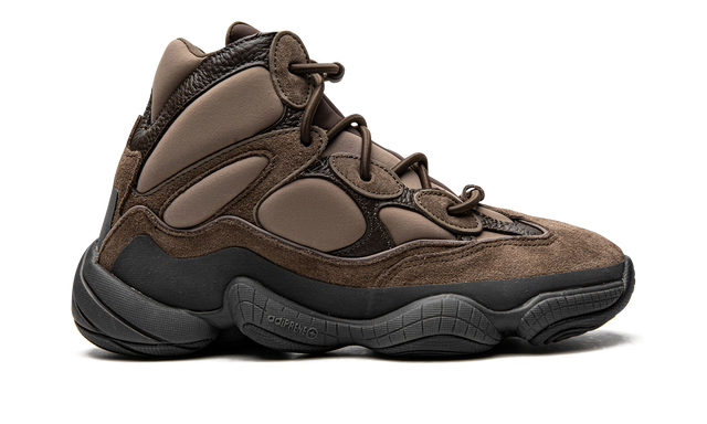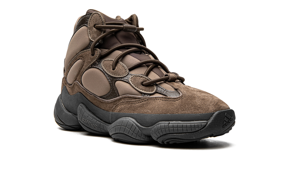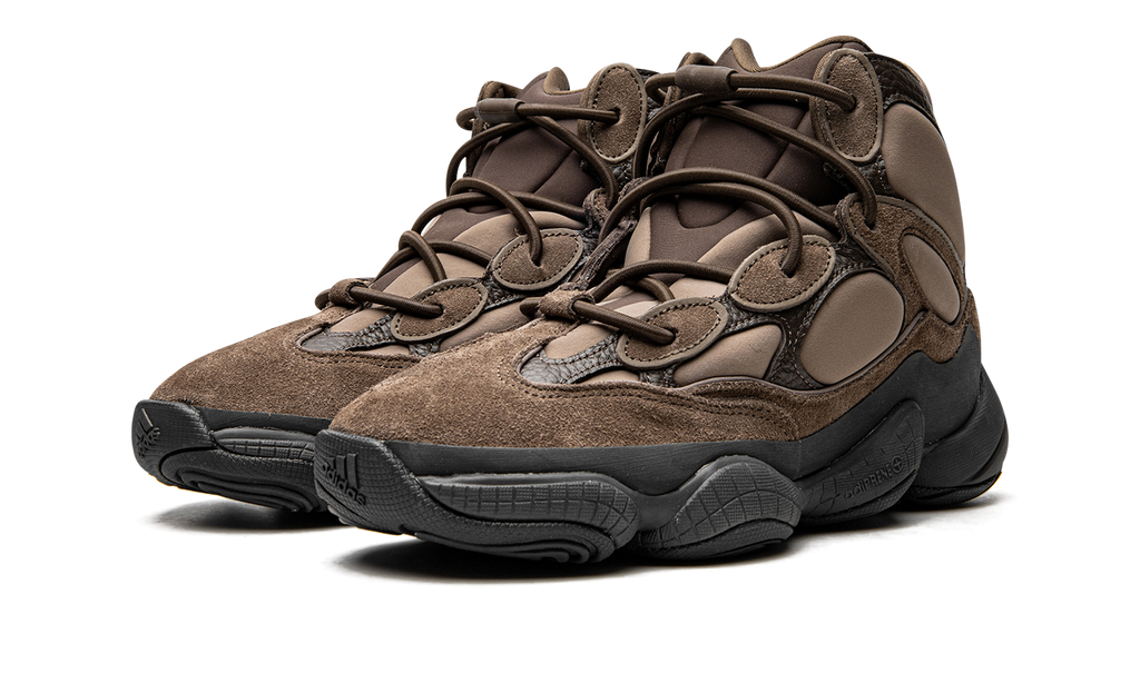 The adidas Yeezy 500 High “Taupe Black” is an earth tone colorway of the high-top version of Kanye West’s popular lifestyle shoe. The Yeezy 500 High features a distinct hiking boot-inspired appearance, especially in this “Taupe Black” colorway. Design wise, the shoe features a brown neoprene base with tonal suede overlays, with the material appearing more prominently on the toe, mudguard, and heel. Black tumbled leather overlays are found on the collar, mid-panel, and forefoot. A no-tie lace setup provides a unique design element. Underfoot, the shoe rests on a black adiPRENE+ midsole inspired by the throwback Feet You Wear technology from the brand’s ‘90s-era performance shoes.