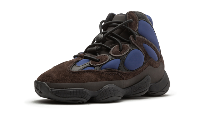 The adidas Yeezy 500 High “Tyrian” is a Spring 2020 colorway that fuses vintage performance basketball aesthetics with hiking boots for a look in and of itself. Only the second colorway of the high-top Yeezy 500 to release, this version features a navy blue neoprene base along the forefoot, mid-panel, and collar. Supple brown suede and black leather overlays on the toe, mid-panel, and collar provide a contrasting appearance that riffs on hiking footwear. Unlike the previously released “Slate” Yeezy 500 High, this colorway introduces an adjustable lace toggle on top the black neoprene tongue. Recalling nostalgic technology from adidas’s archives, both the adiPRENE midsole and Feet You Wear outsole introduce a decidedly nostalgic element to this contemporary design. Release date: May 16, 2020.