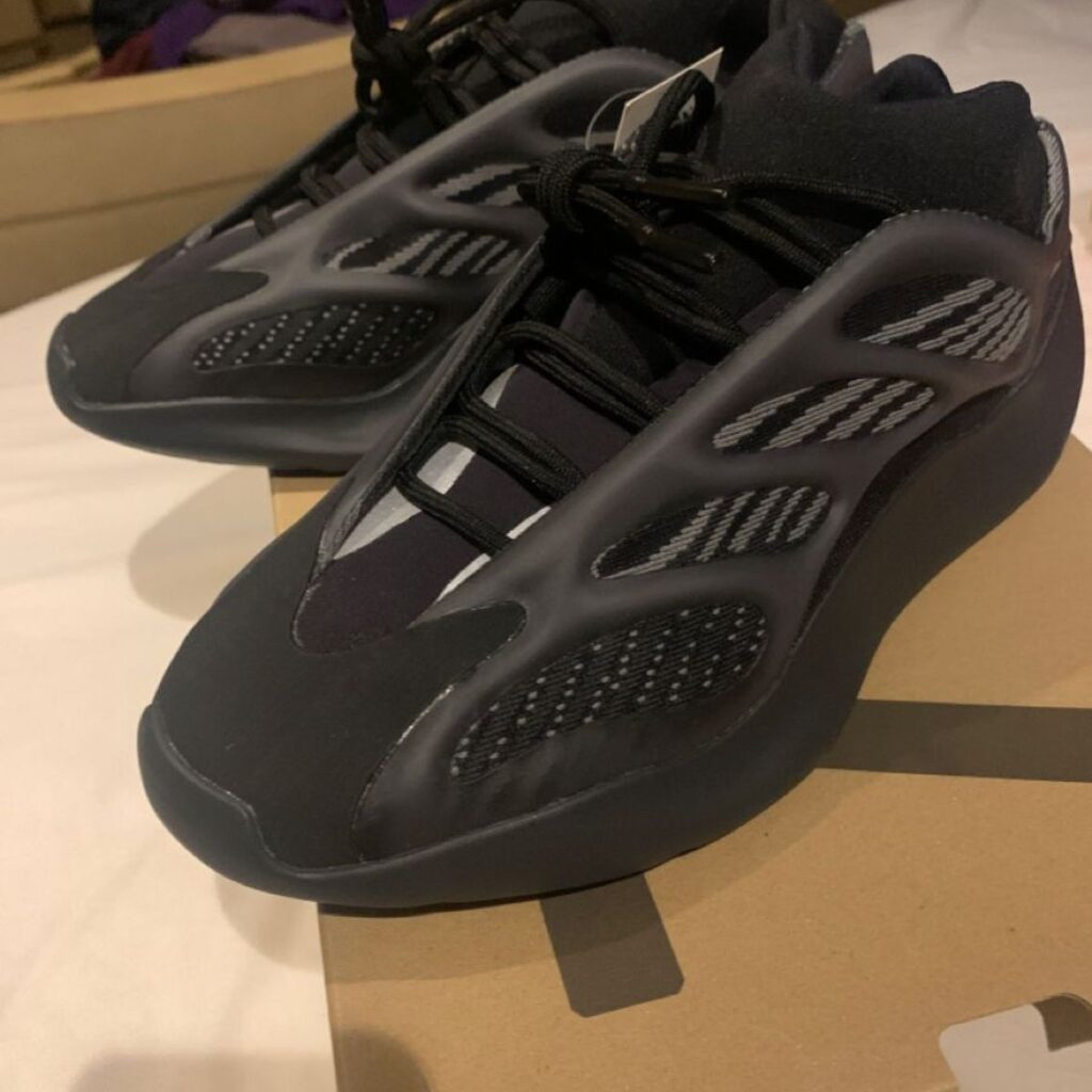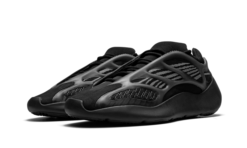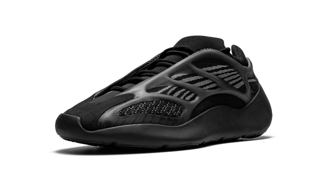 The adidas Yeezy 700 V3 “Alvah” is the second colorway released of Kanye West’s third version of the 700 model. This edition sports a decidedly dark palette in a predominantly black upper with grey accents. The construction features a tonal engineered mesh base with an overlaying RPU “cage” wrapping the foot for support and structure, as well as a futuristic appearance. The chunky yet streamlined blacked-out sole unit completes the striking design. The adidas Yeezy 700 V3 “Alvah” was released on April 11, 2020.