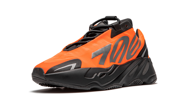 The adidas Yeezy Boost 700 MNVN “Orange” is a vivid colorway of Kanye West’s heralded “dad shoe” with adidas. The model’s first form of outward branding is seen on the mid-panel as reflective “700” detailing is printed in a silver font and shines when exposed to light. Futuristic black and grey accenting can be found on the heel and toe, giving the shoe an evolutionary look when compared to prior releases. A black throat and midsole, which houses adidas’s comfortable Boost cushioning technology, allow for the bold orange upper to attract attention everywhere it goes. The adidas Yeezy Boost 700 MNVN “Orange” was released on February 28, 2020.