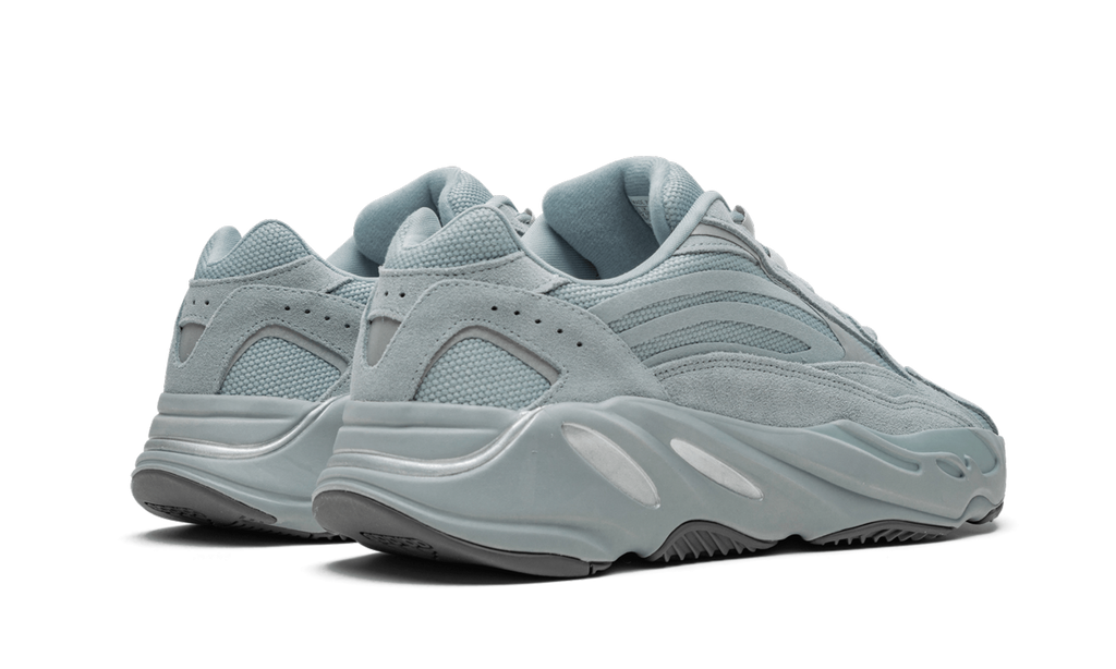 The adidas Yeezy Boost 700 V2 “Hospital Blue” is an updated variation of the ever-popular Yeezy 700 model that was released in fall 2019. Adidas and Kanye West continue with a nuanced approach to reimagining core Yeezy footwear as they apply subtle tweaks to the Yeezy Boost 700 V2 to differentiate the model from its predecessor. Unlike the original design that used a mixture of suede and leather on its upper, the 700 V2 employs a full suede construction on its overlays. Luxe light grey suede with a blueish tint covers the mid-panel, toe, lateral panel, and heel. A matching shade of mesh comprises the base of the design underneath the suede overlays. Contrasting touches include synthetic silver hits throughout the upper. Keeping in tune with vibe of the chunky silhouette, the 700 V2 applies a sturdy midsole that includes grey, light blue, and silver accents, all of which house the familiar Boost cushioning unit. Release date: September 28th, 2019.